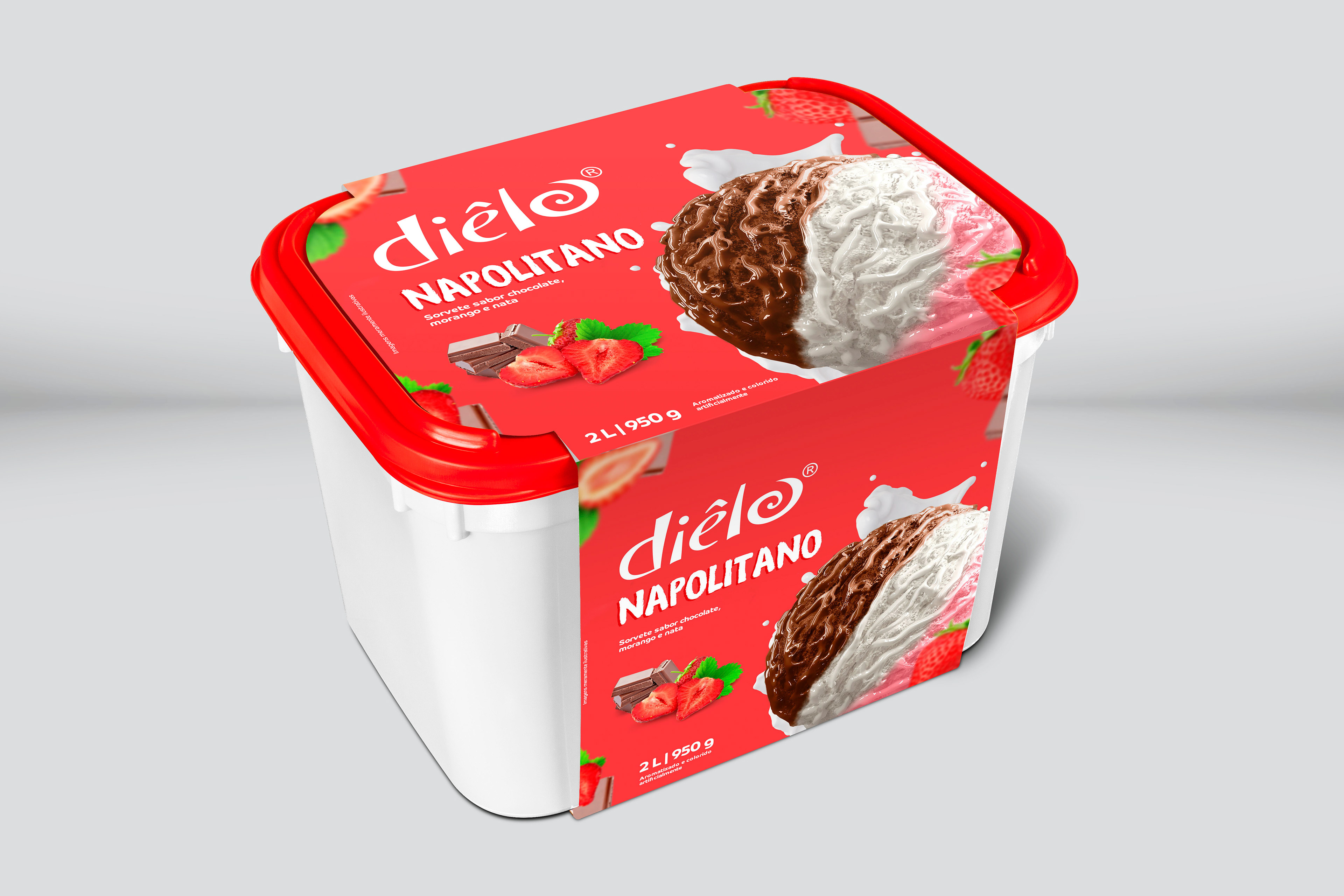 Embalagens criadas na SPO Comunicação para Diêlo Sorvetes.